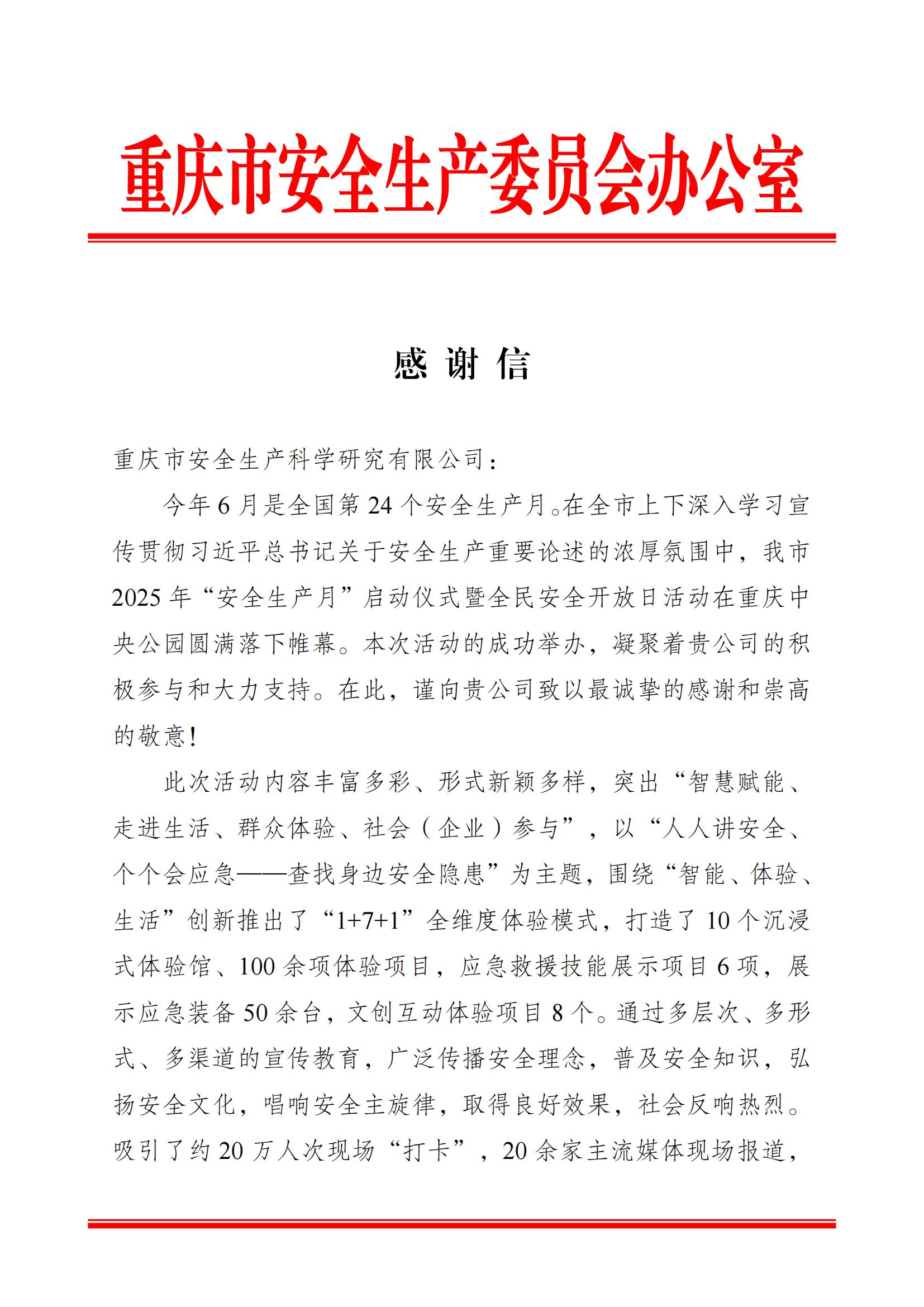 公司以專業力量助力重慶市“安全生產月”活動